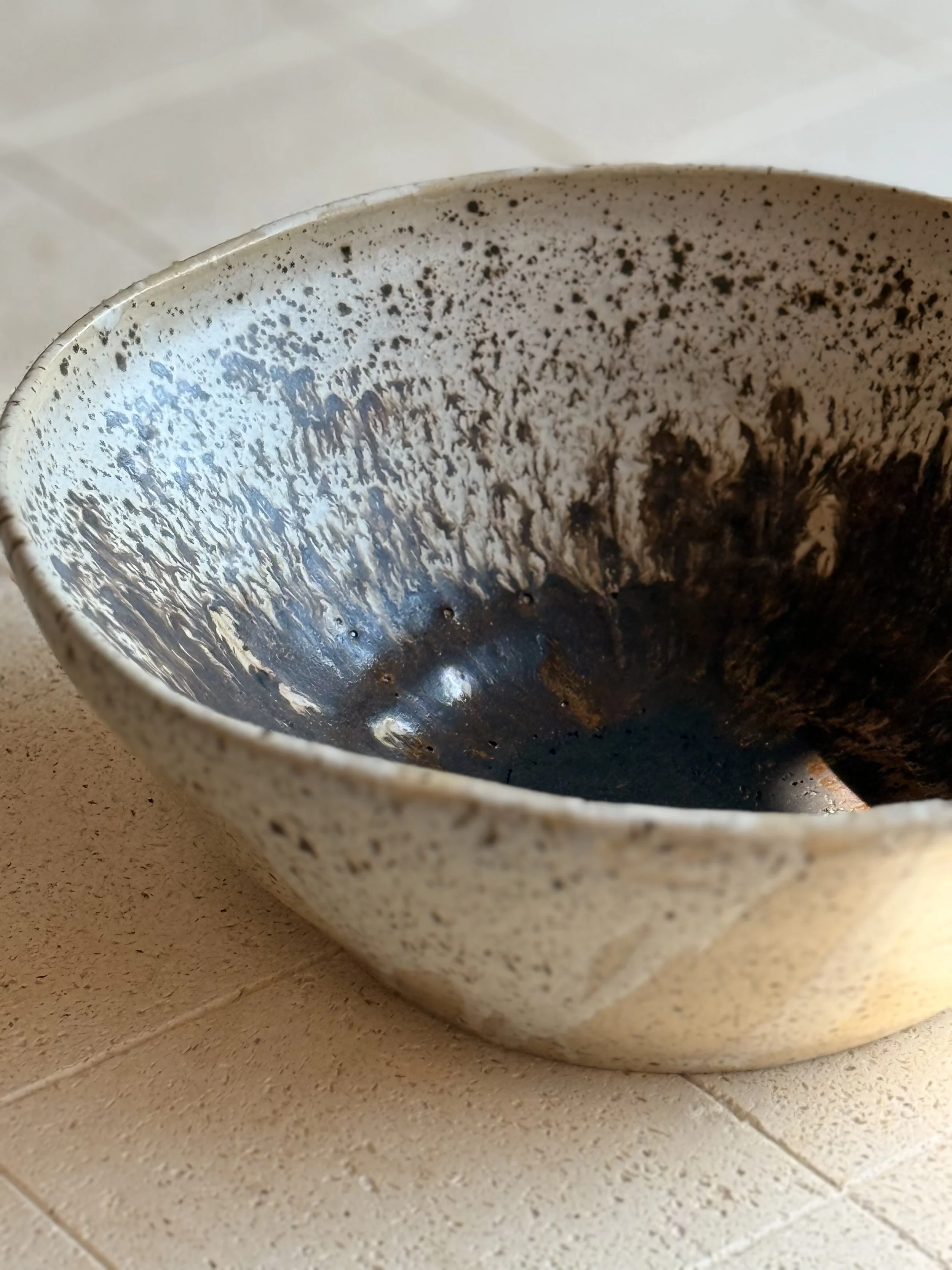 Mõnusalt pirakas vutimunatäpiline kauss – selles on kindlasti hea hoida näiteks banaane, komme, telekapulte jms elutoapudi, aga sobib ka riiulile kaunistuseks.