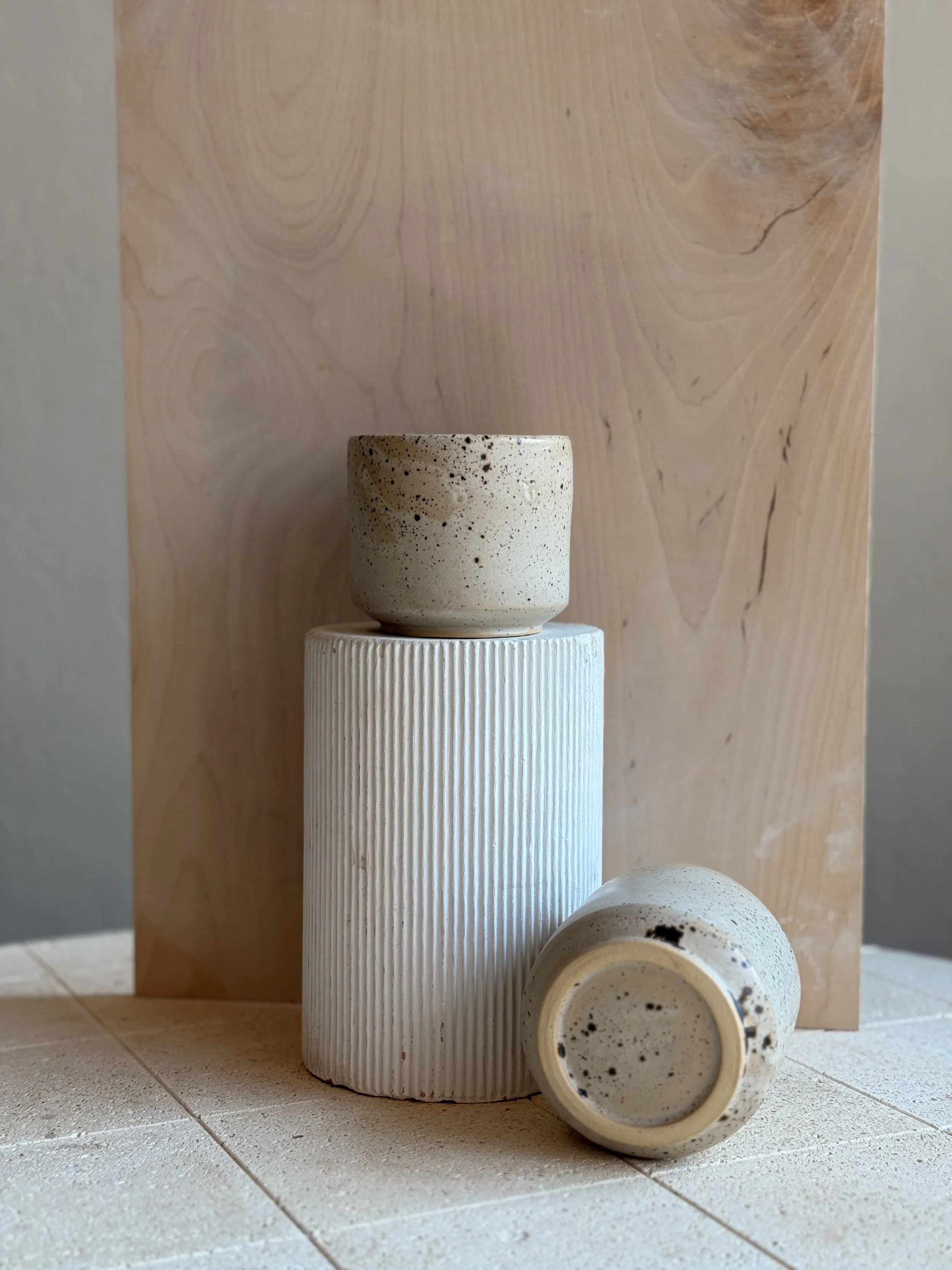 Kirjud vutimunamustrilised kruusid on valminud suvealguse sooja vihmasabina saatel Põhjala tehase stuudios ketra keerutades ning glasuuritud pruunitäpilise glasuuriga valge savi põhjale. Pole ühtegi jooki, mis selles kruusikomplektis tore välja ei näeks – ideaalsed ka pisikesteks hommikusteks teesteremooniateks, täppidest on tore tähistaevast lugeda.