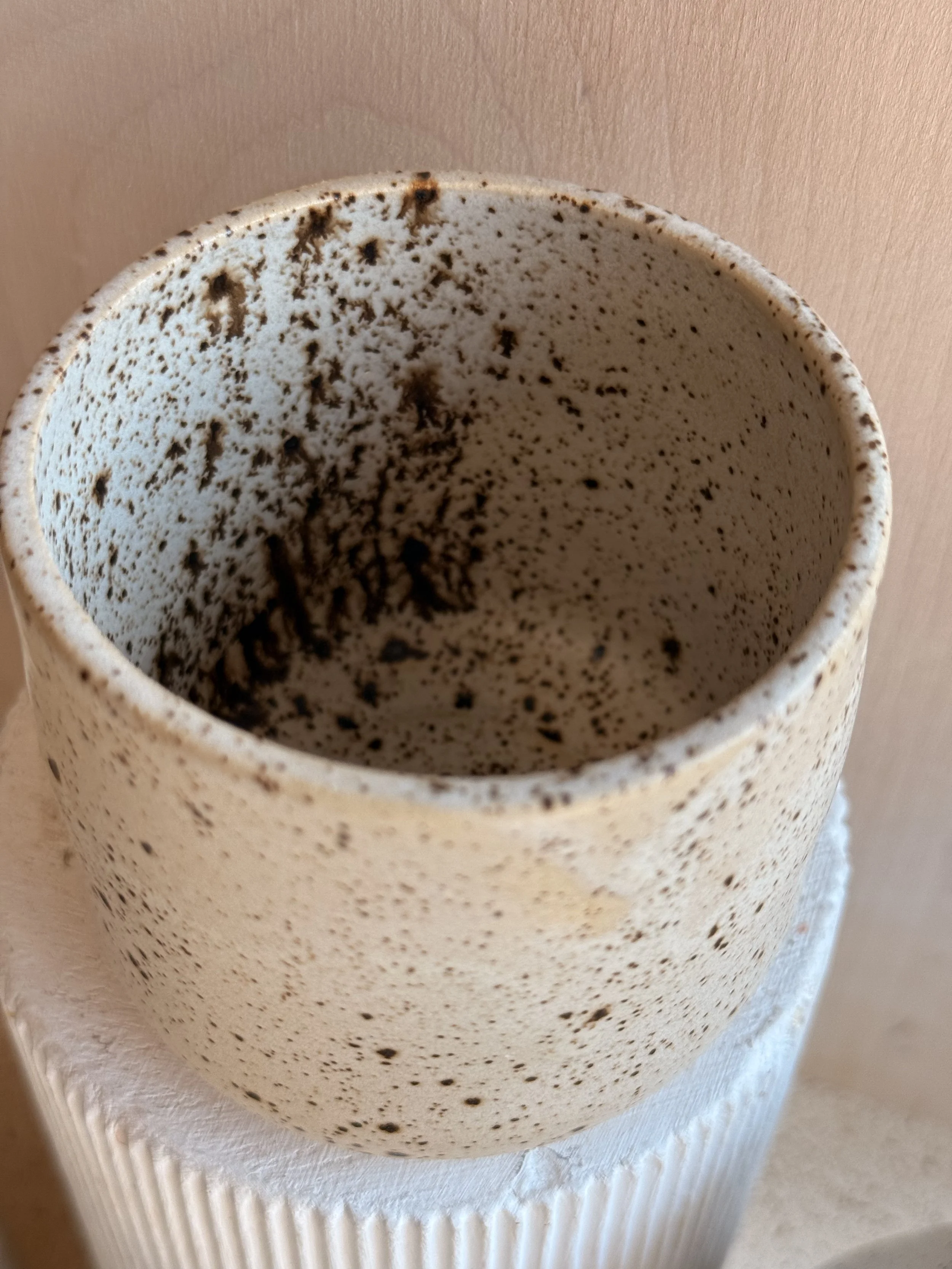 Kirju vutimunamustriline kruus on valminud suvealguse sooja vihmasabina saatel Põhjala tehase stuudios ketra keerutades ning glasuuritud pruunitäpilise glasuuriga valge savi põhjale. Pole ühtegi jooki, mis selles kruusis tore välja ei näeks – ideaalne ka pisikeseks hommikuseks teesteremooniaks, täppidest on tore tähistaevast lugeda.